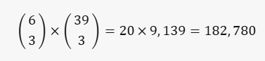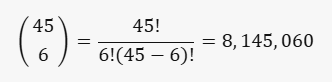 45개의 숫자 중 6개를 선택하는 경우의 수는 다음과 같습니다.
